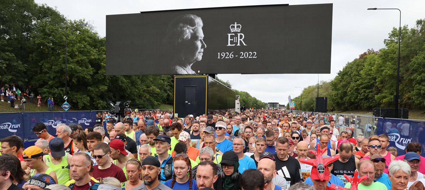 Tens of thousands of runners paid tribute to the Queen in Newcastle this morning on the start line of the Great North Run. Participants and spectators bowed their heads as the Bishop of Newcastle, the Rt Revd Mark Wroe, who, joined by faith leaders from across the city, led the crowd in a moment of remembrance. A poignant minute’s silence was then followed by the national anthem.