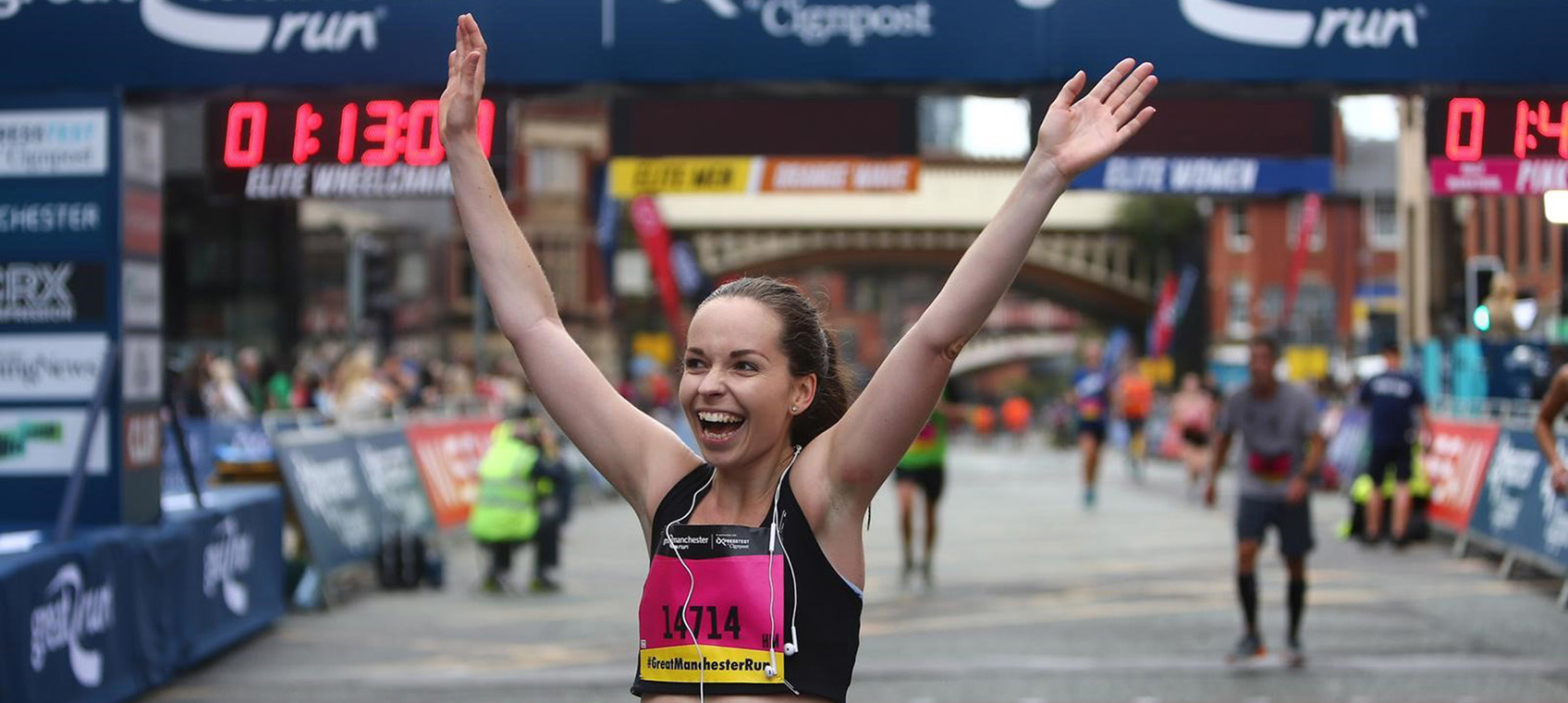 Crossing the finish line on Deansgate to cheering crowds, you’ll be feeling elation, exhaustion and joy as you complete your challenge. The greatest reward is the sense of achievement, but a shiny new medal, a snazzy finishers t-shirt and a finisher’s bag filled with goodies will await you at the end of the run. Why not throw in an ice-cold pint and the perfect post-run meal – you’ve earned it!