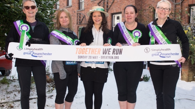 One-hundred women will run shoulder-to-shoulder at the Simplyhealth Great Manchester Run in celebration of the women’s suffrage movement.