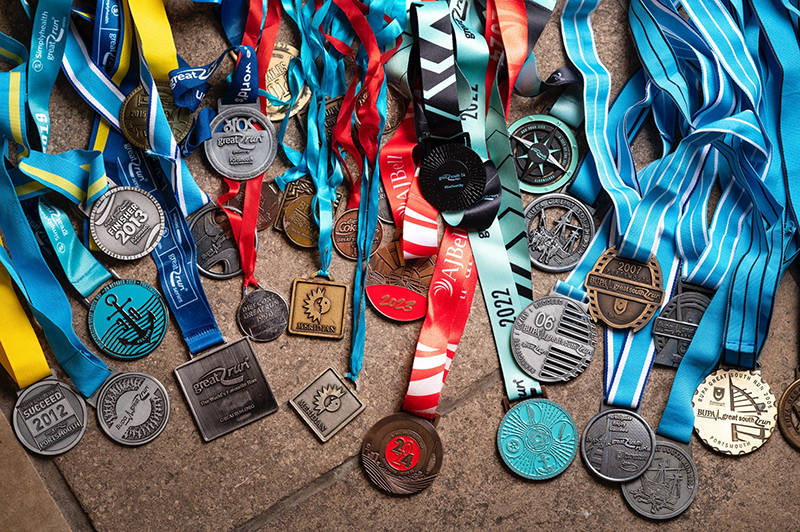 Two people who have been involved in the Great South Run throughout its 35 year history are Dave Olsen and Pam Rogers. Dave, one of the few runners to have completed every single Great South Run since its first staging in 1990, proudly showed off his collection of medals. Pam’s long standing association with the event started as a club runner at the first 15 Great South Runs before she became one of the event officials.