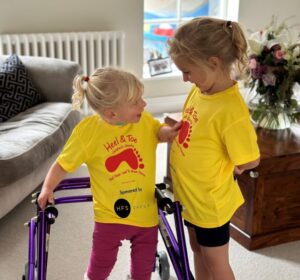 5-year-old Catherine and 3-year-old Emma Robinson from Ponteland are taking part in this year’s AJ Bell Mini Great North Run to raise money for local children’s charity, Heel and Toe.