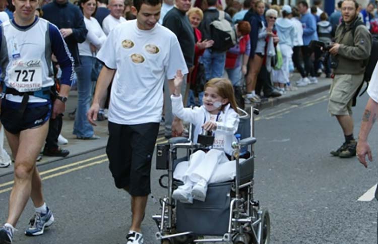 Ireland went on to recall Kirsty’s first experience of the Great Manchester Run, saying, “Kirsty was oxygen dependent and used an electric wheelchair. Dressed in her running gear, Kirsty joined the start line of young runners at the very first children’s race in May 2003. Her wheelchair, however, wasn’t equipped for speed, and she was quickly overtaken by the others. However, she was at the finishing line of the seniors’ race, cheering them on!”
