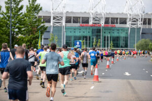 Runners pass the ‘Theatre of Dreams’ dreaming of one thing, the finish. It’s a special feeling to run so close to one of the most iconic football stadiums in the world, and so luckily for the runners they get to pass by twice!